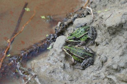 Mitten in der Laichzeit der Frösche wurde einer von 3 Teichen am Tripser Wäldchen entgegen den Vorgaben des Bundesnaturschutzgesetz*(siehe Kasten rechts) nachhaltig zerstört – von einem Bagger des städtischen Bauhofs! Den von Bürgern herbeigerufenen Grünen Ratsherren Rainer Jansen und Jürgen Benden bot sich ein Bild des Jammers: zerstörtes Ufer, aufgerissene Teichfolie, sterbende Wassertiere, schnell wegsickerndes Wasser, Ölschlieren. Fraktionschef Jürgen Benden reichte umgehend eine schriftliche Anfrage zur Sitzung des Bauausschusses ein und verlangte namens seiner Fraktion lückenlose Aufklärung.